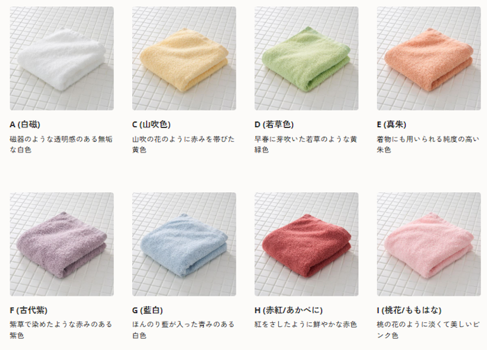 軽さと柔らかさ、色合いの美しさなど、"五感”で"ときめき”を感じていただけるタオルに仕上げました。初めての方にも1枚からお試しいただきやすく、リピーターの方にはこの機会にお得にまとめ買いいただけます。新年を迎える準備に、ぜひお役立てください。