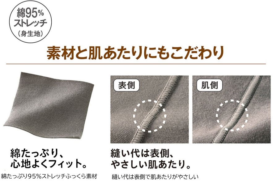 ■身生地=綿95%ポリウレタン5%(ストレッチ天竺)